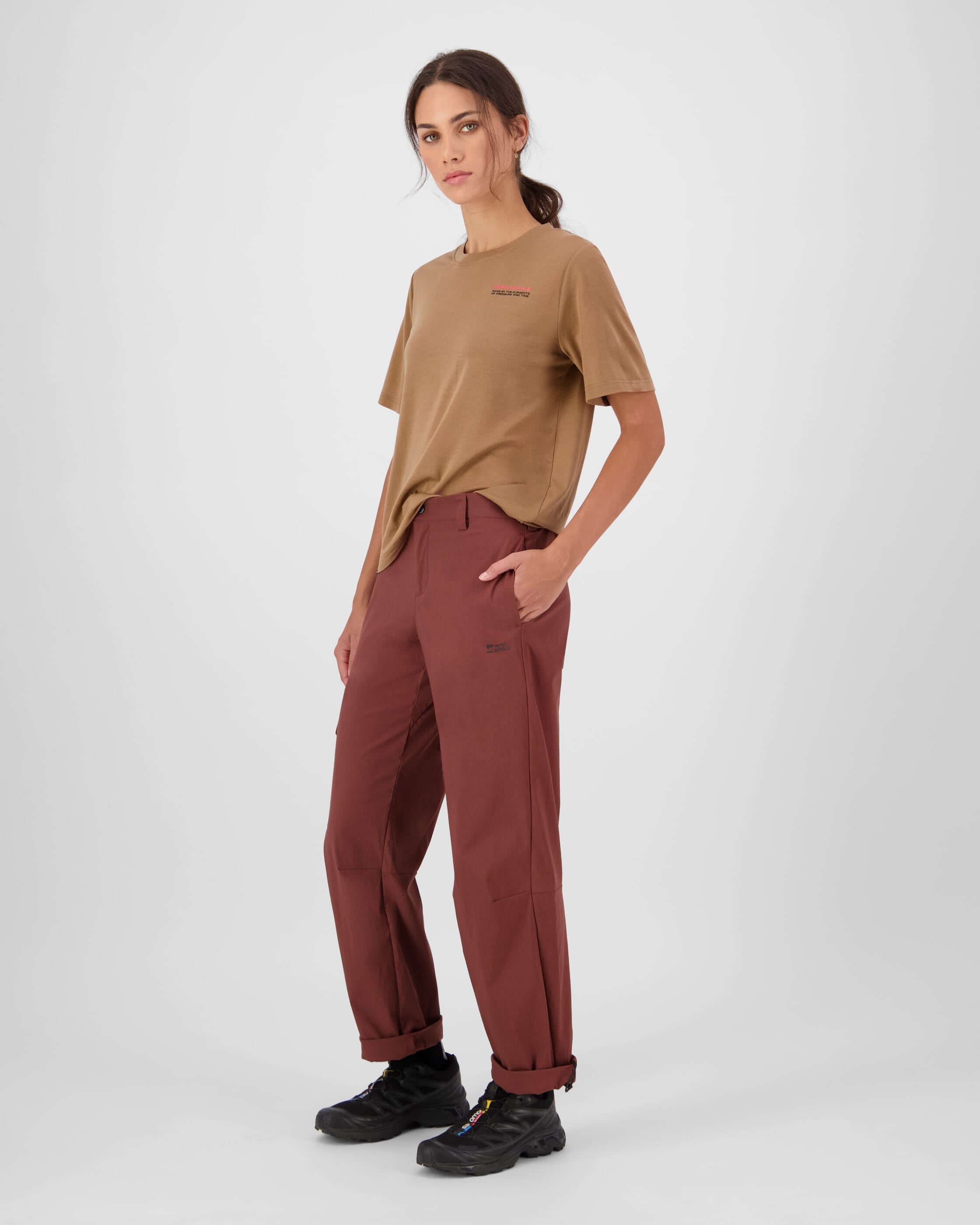 Pack more into your day, not your bag, with the performance of Merino Wool in an all-mission pant. Technical terrain or concrete jungle, this slack breathes, stretches, dries fast and goes the distance. A pocket size for every stash. An adjustable hem for every adventure.